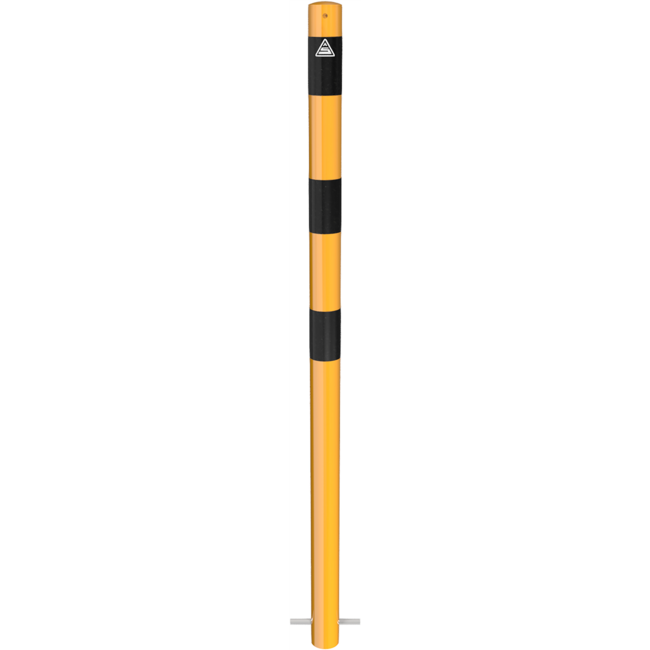 Beschermpaal met geel/zwart strepen 90 cm boven de grond. Verschillende montage opties en optie voor kettingogen. Lees meer.
