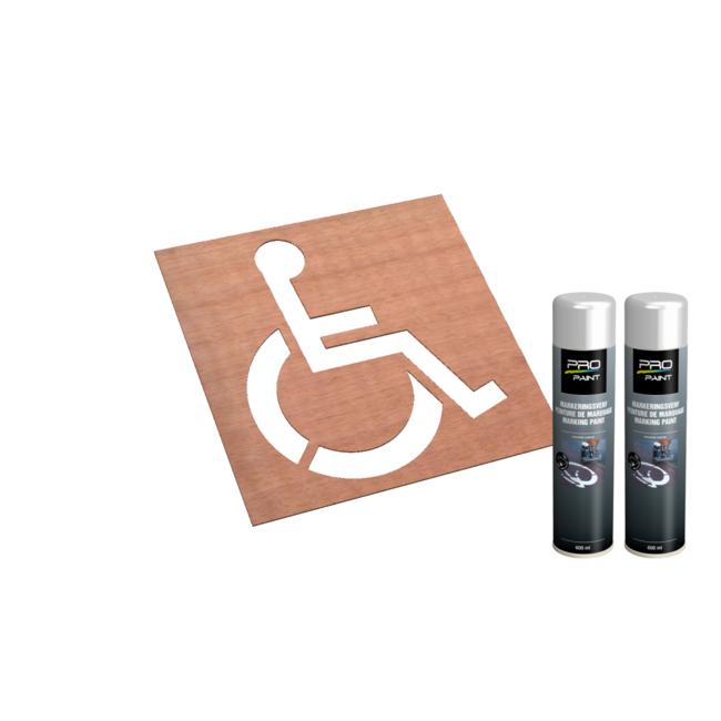 Dit sjabloon set is ideaal voor het maken van diverse rolstoel logo's in parkeervakken.