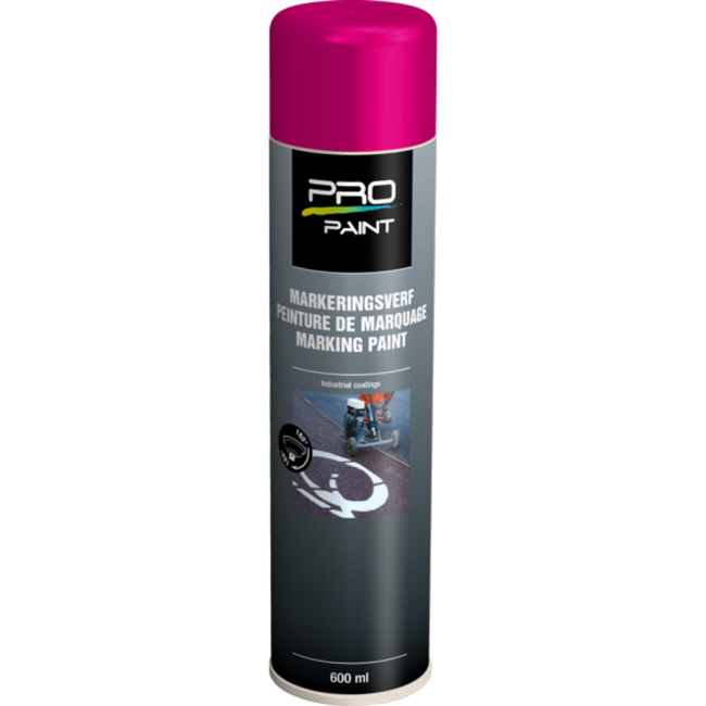 Kwalitatief zeer goede roze markeringsverf in spuitbus voor het zelfstandig en eenvoudig aanbrengen van wegenverf op vrijwel iedere ondergrond. met een zeer lange levensduur van wel 1 tot 2 jaar.