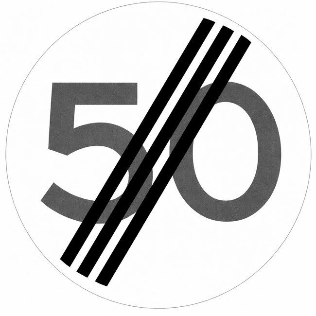 Traffictotaal RVV verkeersbord A02-50| Einde max. snelheid | 50 km/h