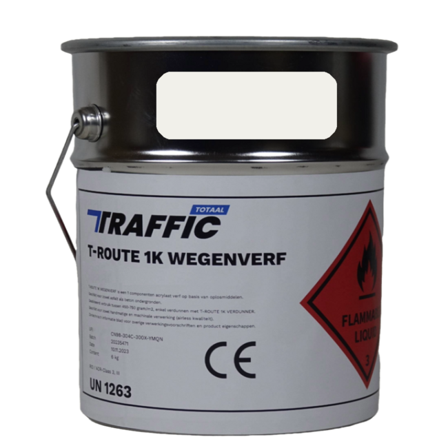 Bent u op zoek naar een heldere en duurzame witte wegenverf voor het markeren van wegen en paden? Onze Traffictotaal wegenverf in wit RAL9016 is de ideale keuze voor sterke, langhoudende en gemakkelijk aan te brengen markeringen. De witte kleur RAL9016 staat garant voor maximale zichtbaarheid, essentieel voor duidelijke markeringen op wegen, looproutes, parkeerplaatsen en andere verkeerszones. Onze markeringsverf heeft uitstekende hechting en hoge dekkracht. Dankzij de snelle droogtijd kunnen voertuigen al na ongeveer 20 minuten bij 20 graden Celsius weer over het geschilderde oppervlak rijden. Bovendien biedt de verf een hoog vast stofgehalte, waardoor het bestand is tegen slijtage en strooizouten. Onze wegenverf wordt geleverd in een praktisch 6 kg blik, ideaal voor aanbrengen met kwast, roller of spuitapparatuur.