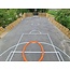 Met behulp van onze hoogwaardige gecertificeerde wegmarkeringsverf kunnen wij de vloerbelijning in diverse kleuren aanbrengen, zodat je de speelvelden kunt personaliseren of onderscheiden. Of je nu een basketbalveld wilt markeren, een voetbalveld of zelfs beide, onze samengevoegde exemplaar biedt de flexibiliteit en veelzijdigheid die je nodig hebt.