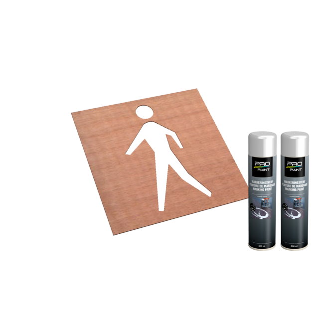 Met deze spuit sjabloon kunt u eenvoudig voetgangerszones aanbrengen op u bedrijventerrein of in het magazijn. Door duidelijk aan te geven waar er gelopen mag worden wordt de kans op ongelukken binnen je bedrijf kleiner. Deze spuitmal is geproduceerd van duurzaam hout en wordt geleverd met 2 spuitbussen wegenverf wit.